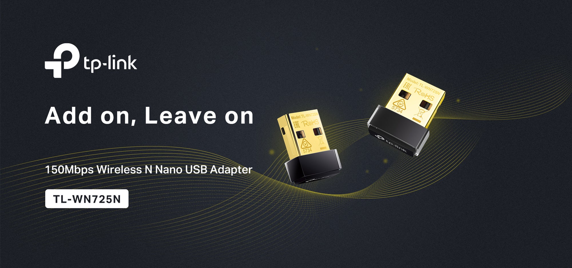 محول TL-WN725N N150 لاسلكي بوصلة USB لشبكات الواي فاي بحجم نانو لأجهزة الكمبيوتر واللابتوب يتوافق مع أنظمة ويندوز 10/8.1/8/7/XP وMac OS X ولينوكس أسود/ذهبي