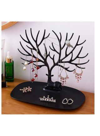 منظم وحامل مجوهرات وإكسسوارات على شكل شجرة باللون الأسود
