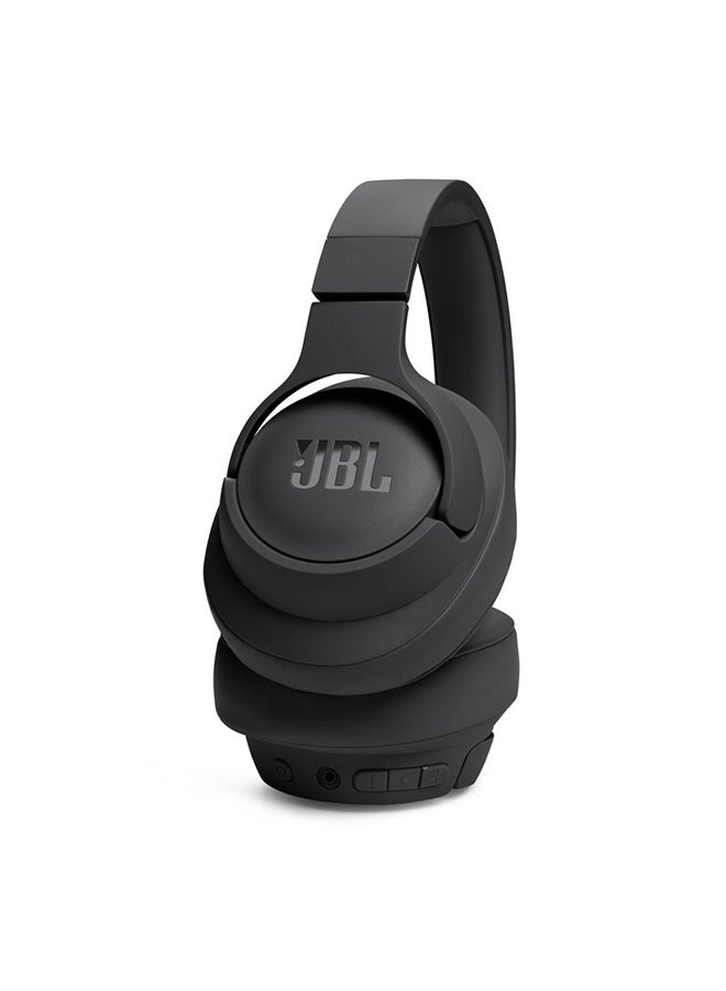 سماعات Tune 720Bt اللاسلكية فوق الأذن، صوت جهير نقي، بطارية 76 ساعة، مكالمات بدون استخدام اليدين بالإضافة إلى اتصال صوتي متعدد النقاط، كابل صوت خفيف الوزن وقابل للطي وقابل للفصل أسود