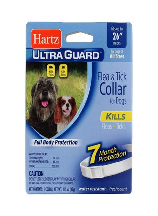 احمِ كلبك من الآفات غير المرغوب فيها مع طوق ألترا جارد المضاد للبراغيث والقراد. يوفر هذا الطوق سهل الاستخدام حماية طويلة الأمد ضد البراغيث والقراد، مما يساعد على الحفاظ على سلامة حيوانك الأليف وراحته. صُمم ليناسب الكلاب التي يصل طول رقابها إلى 26 بوصة، وهو قابل للتعديل ومقاوم للماء وفعال للارتداء المستمر..