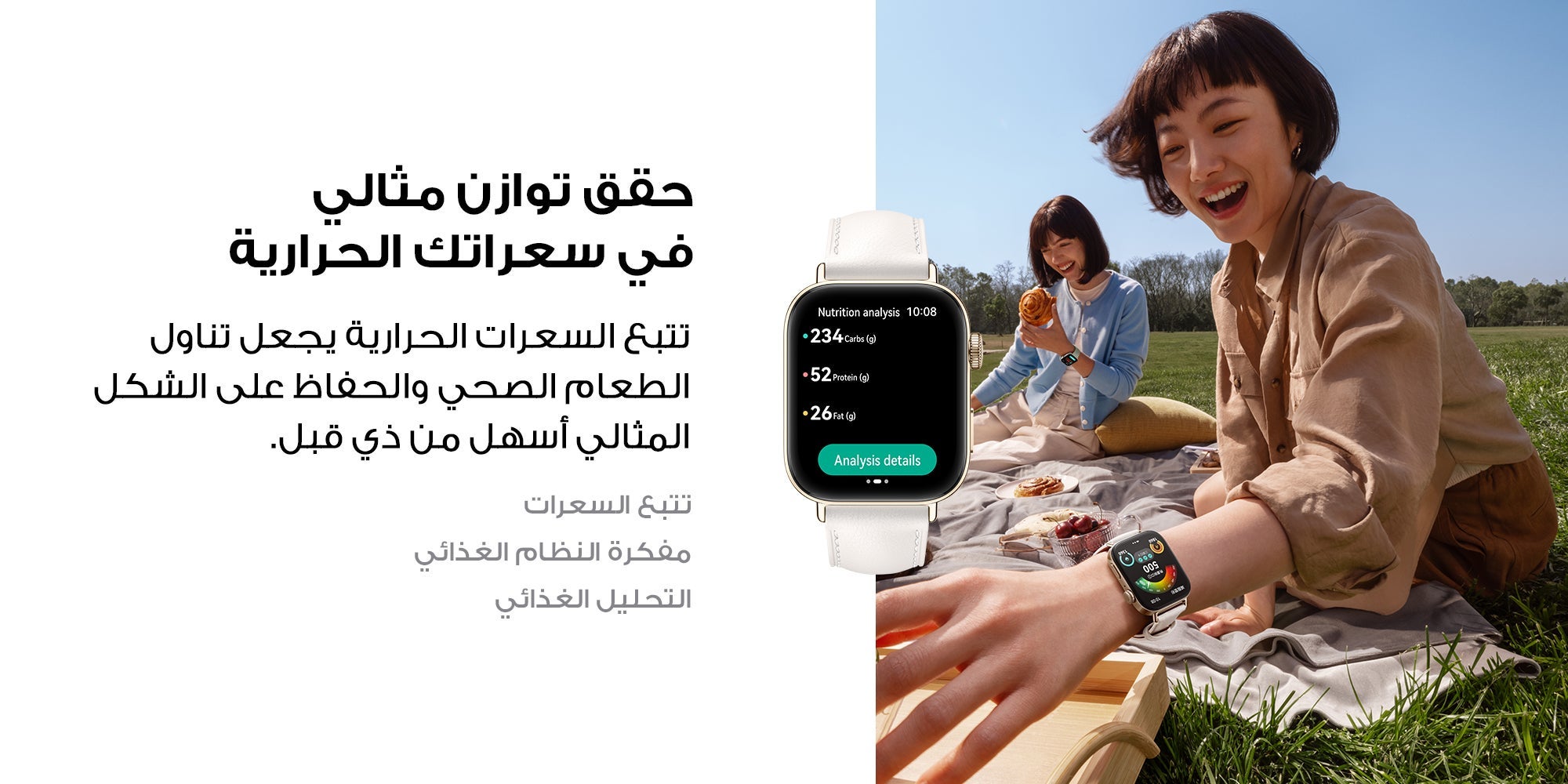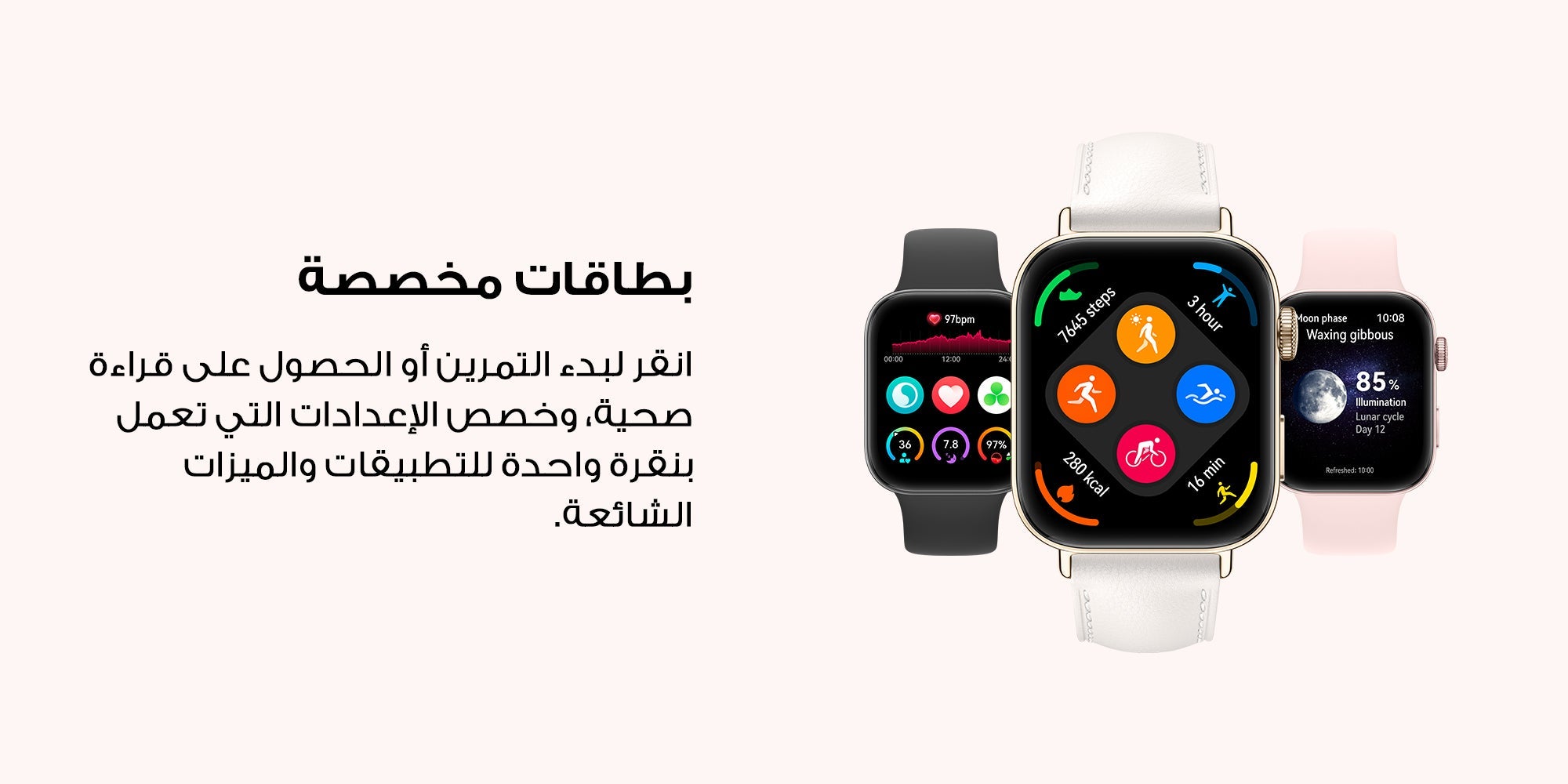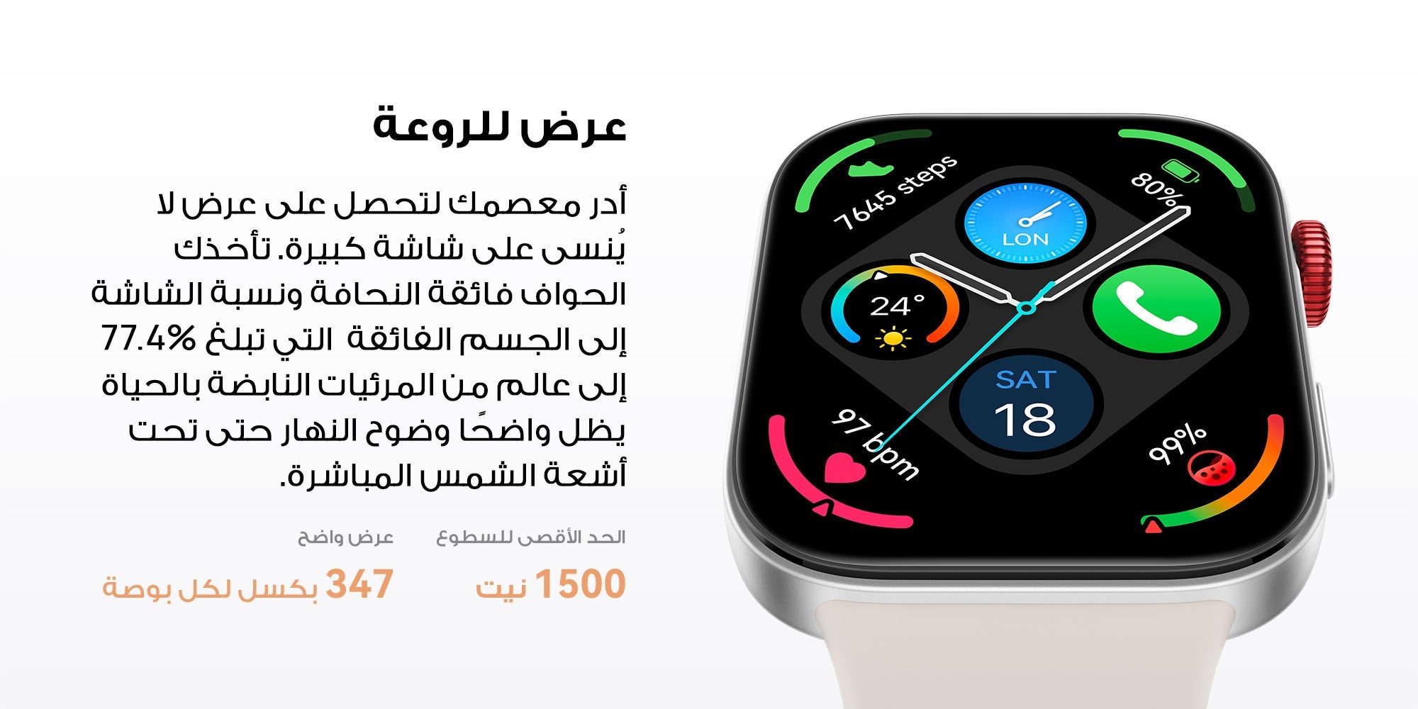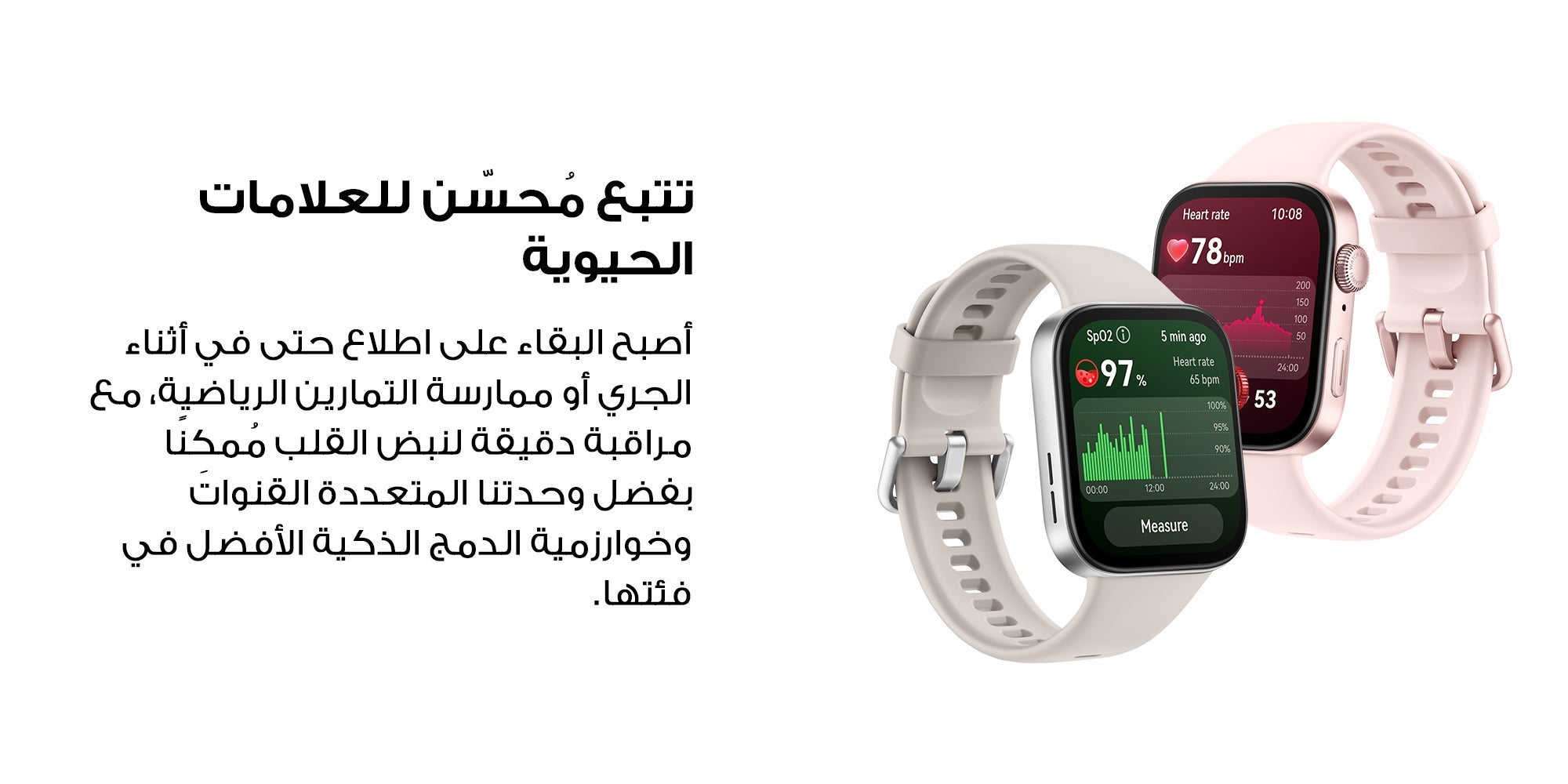 | محتويات العلبة | Watch, Charging Pad, Quick Start Guide, Safety Information, And Warranty Card |