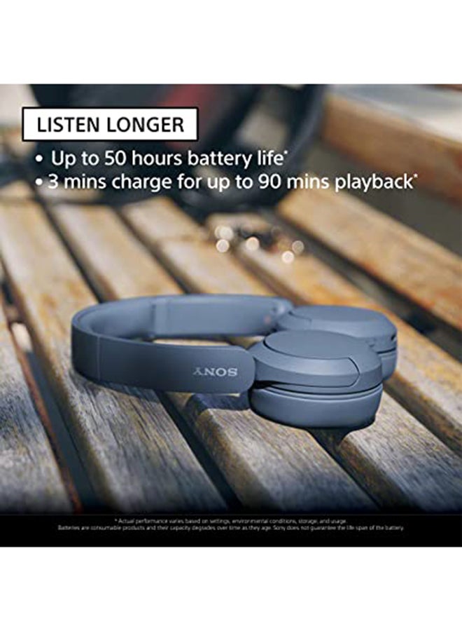 سماعة لاسلكية تعمل بالبلوتوث WH-CH520 على الأذن مع ميكروفون للمكالمات الهاتفية لون أزرق