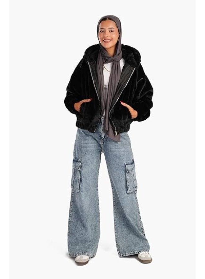 ارتقِ بخزانة ملابسك الشتوية مع هذا الجاكيت الفاخر ذو القلنسوة المصنوع من الفرو الصناعي الأسود. يوفر التصميم القصير صورة ظلية عصرية تكمل بشكل مثالي كل من الملابس الكاجوال والأنيقة. يتميز هذا الجاكيت المخملي بسحاب أمامي عملي، ويجمع بين الأناقة والعملية. يضيف غطاء الرأس المريح مزيدًا من الدفء والرقي، بينما يوفر نسيج الفرو الصناعي الناعم أقصى درجات الراحة خلال الأيام الباردة. يسمح المقاس المريح بطبقات سهلة، مما يجعله متعدد الاستخدامات لمختلف المناسبات. مثالي للنزهات الكاجوال أو المناسبات المسائية، يضيف هذا الجاكيت لمسة من السحر إلى أي مجموعة. يعمل الطول القصير بشكل جميل مع الأجزاء السفلية عالية الخصر، مما يخلق مظهرًا متوازنًا وعصريًا. تضمن المادة المخملية الدفء دون التنازل عن الأناقة، مما يجعلها إضافة أساسية لمجموعة الطقس البارد. يجمع هذا الجاكيت بسلاسة بين الراحة والأزياء المعاصرة، وهو مناسب للارتداء اليومي والمناسبات الخاصة.