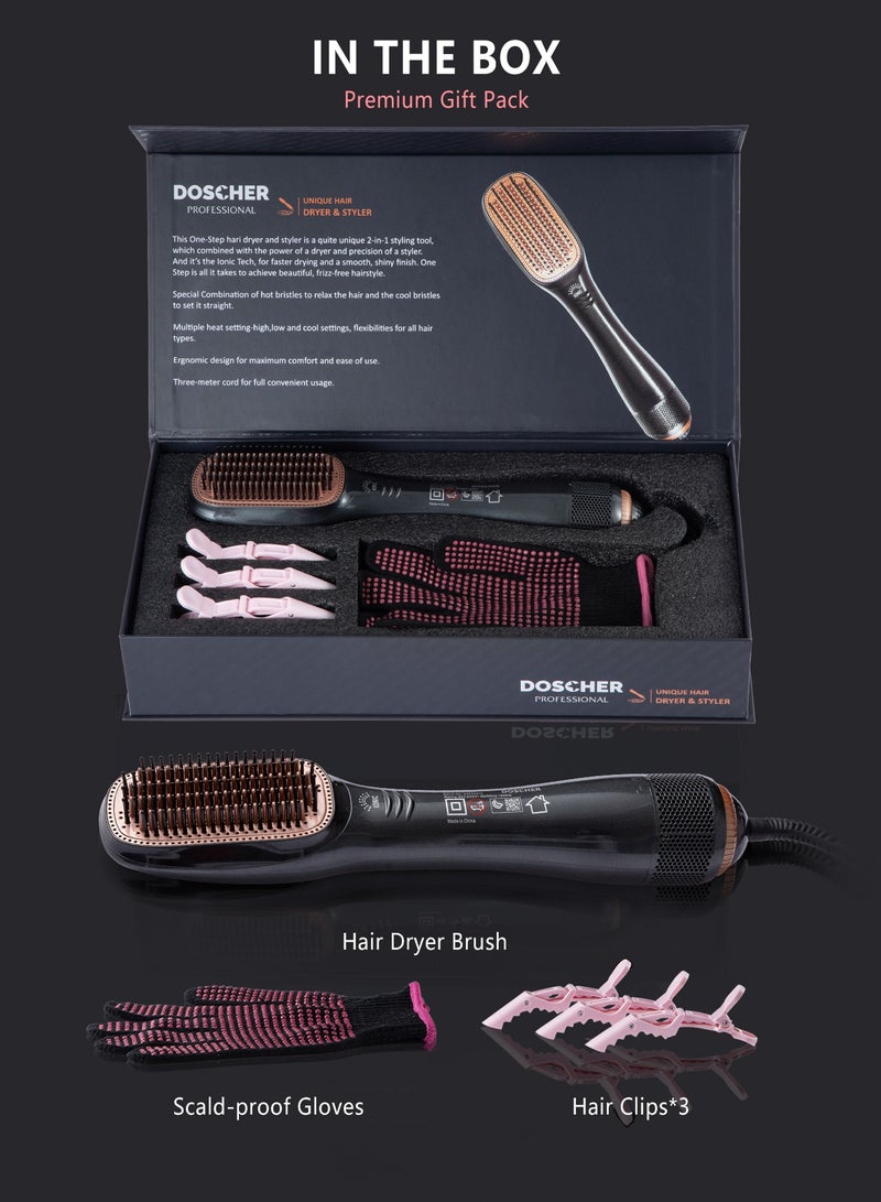 It has three different tool settings Heat, High and Low For daily use, fine to medium hair smooth, blow-dry, straighten, shape and polish-all with one easy tool In one step you can create the perfect hair look.