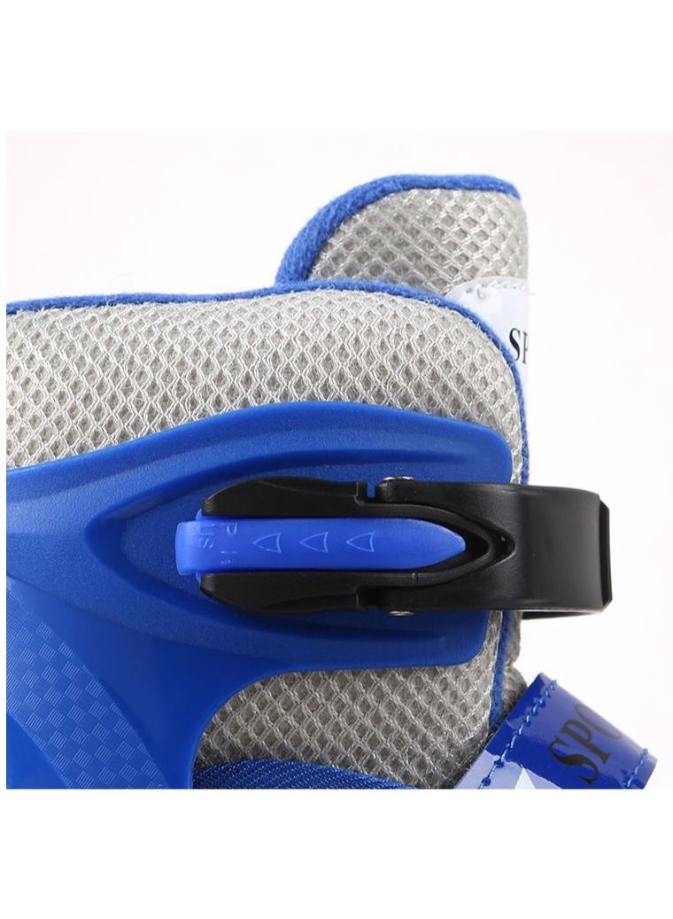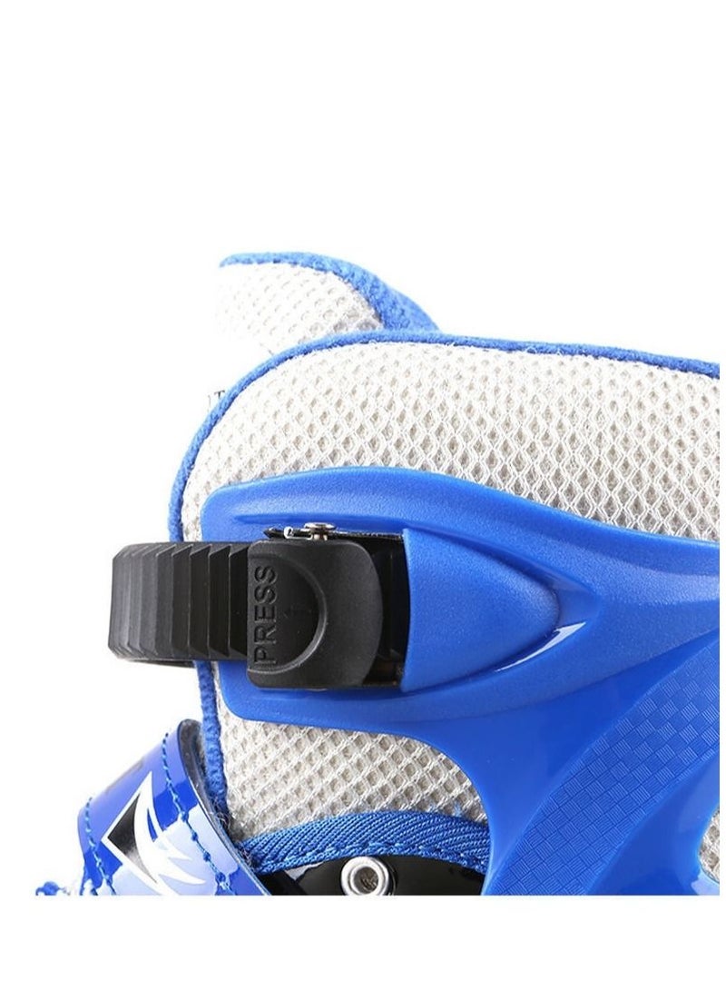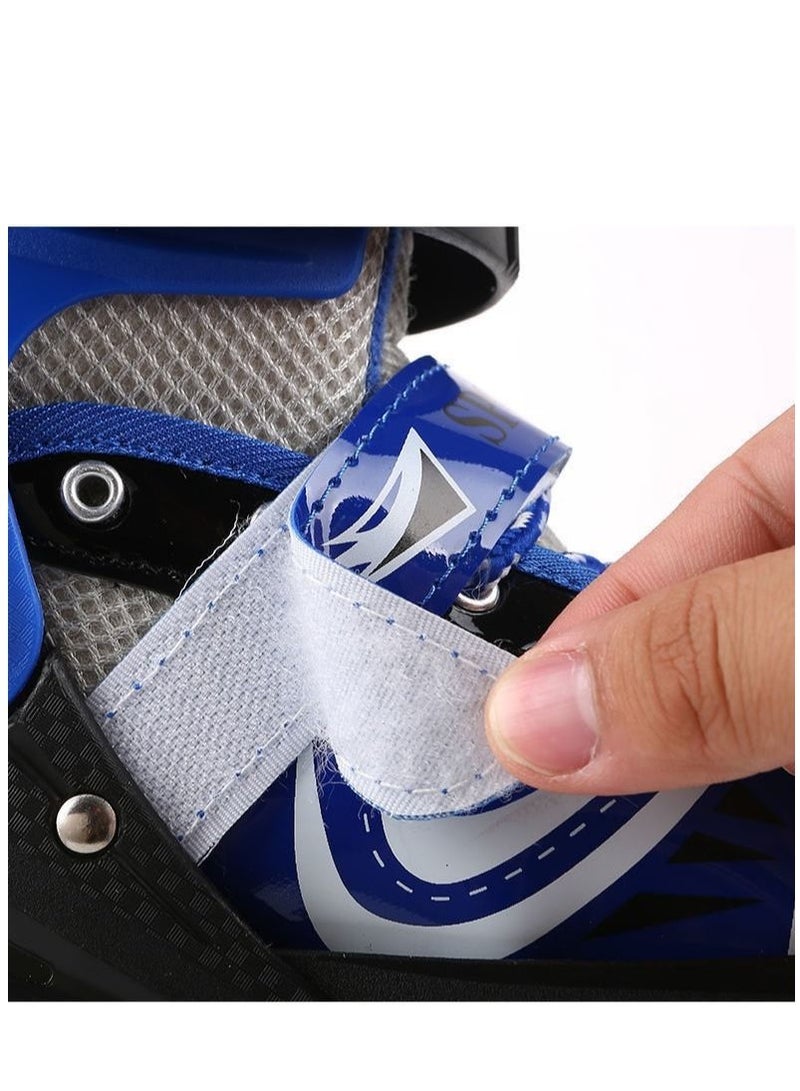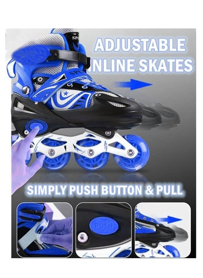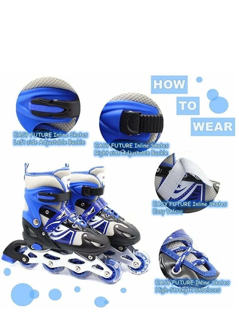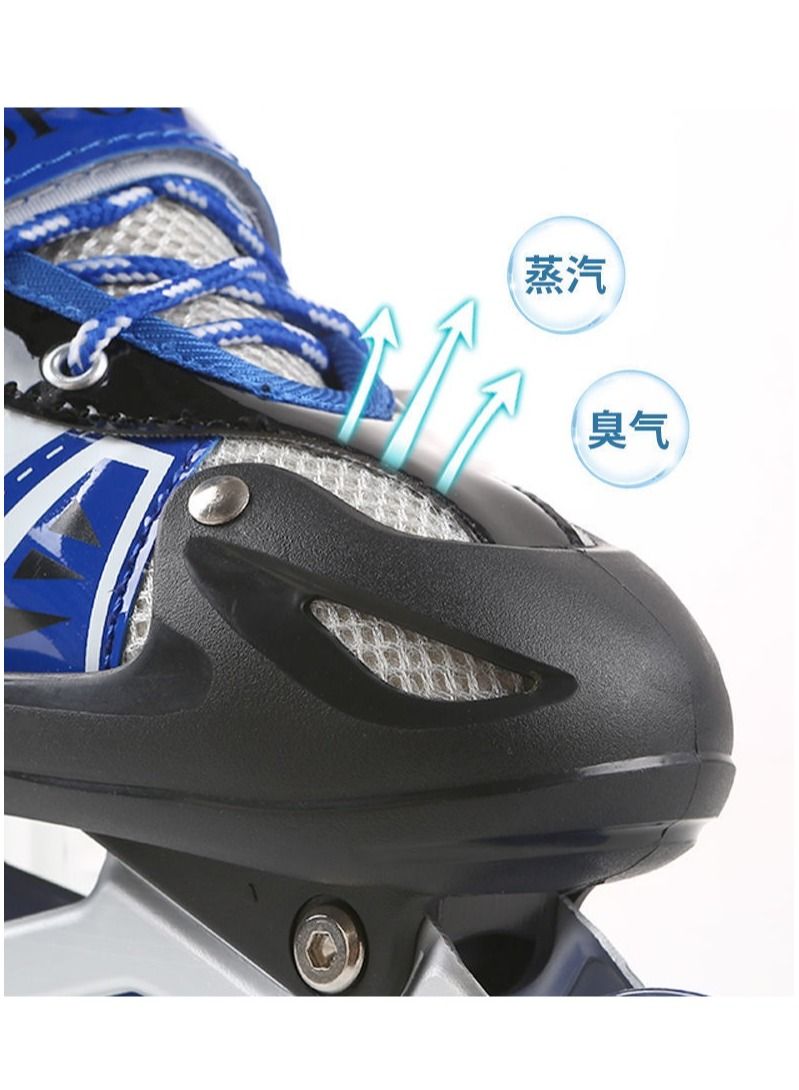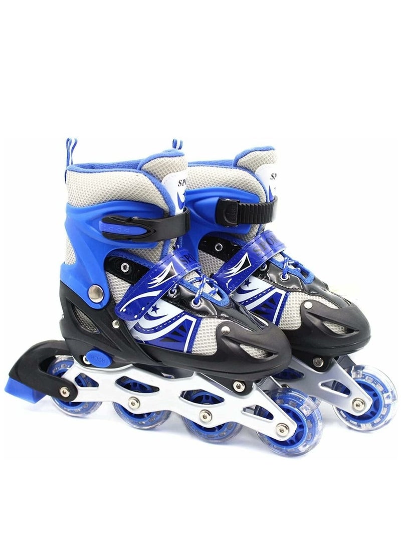 Adjustable Roller Skate Shoes LED Light Single Row Wheels, Blue/Black - Size Meduim 35-38