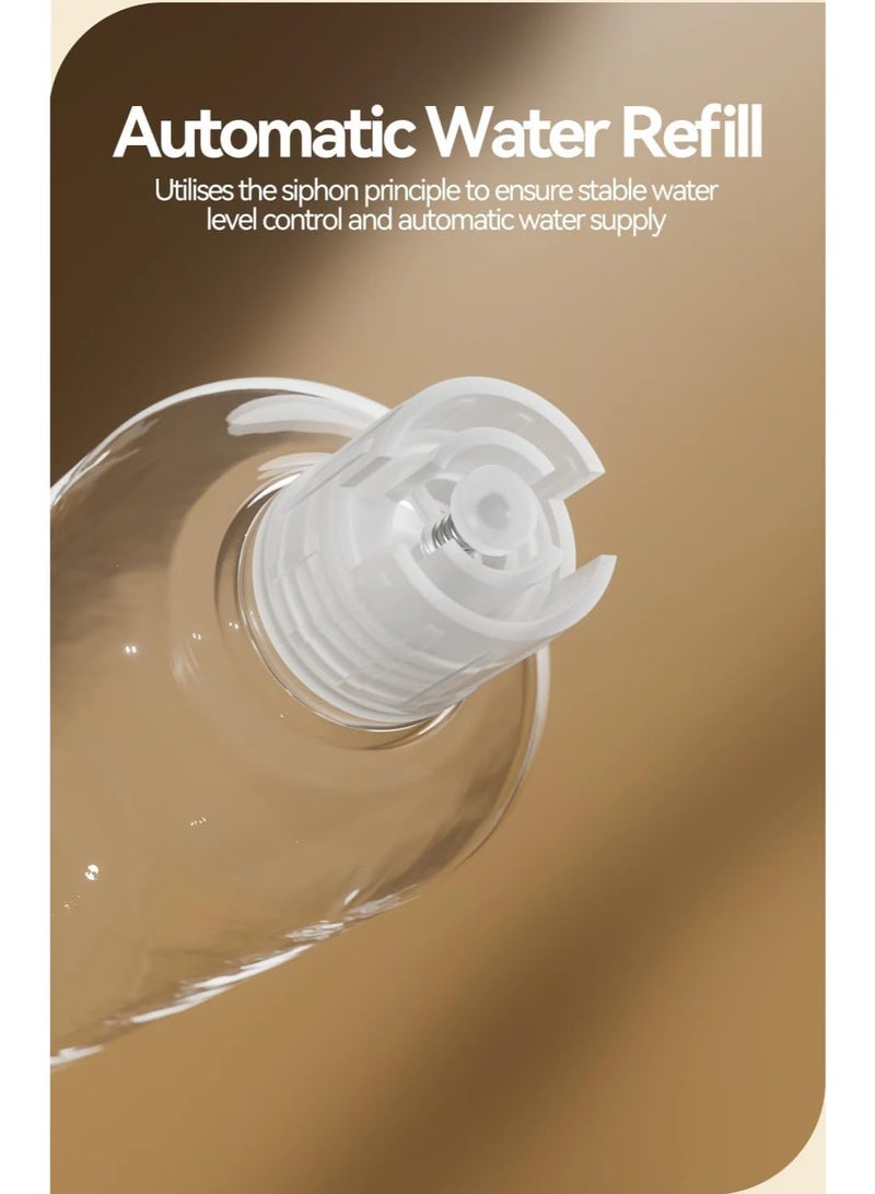 A practical automatic pet bowl designed to provide a healthy and comfortable feeding experience for cats and dogs. It combines a food bowl and a water fountain in one unit, helping organize feeding times and encouraging pets to drink water regularly. The bowl features a stable stand to prevent slipping during use and is made from safe, easy-to-clean materials, making it ideal for daily indoor use while keeping the feeding area clean.