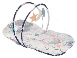 Provide your baby with a safe and cozy sleeping space with this soft cotton baby mattress featuring an integrated mosquito net and hanging toys. The breathable cotton fabric ensures maximum comfort, while the thick padding offers excellent support for restful sleep. The detachable mosquito net protects your little one from insects, and the included soft toys with music provide entertainment and stimulation. This portable baby bed is perfect for home and travel, making it an essential for newborns.