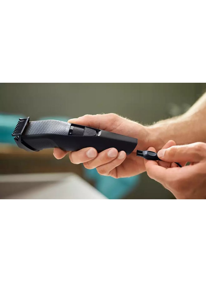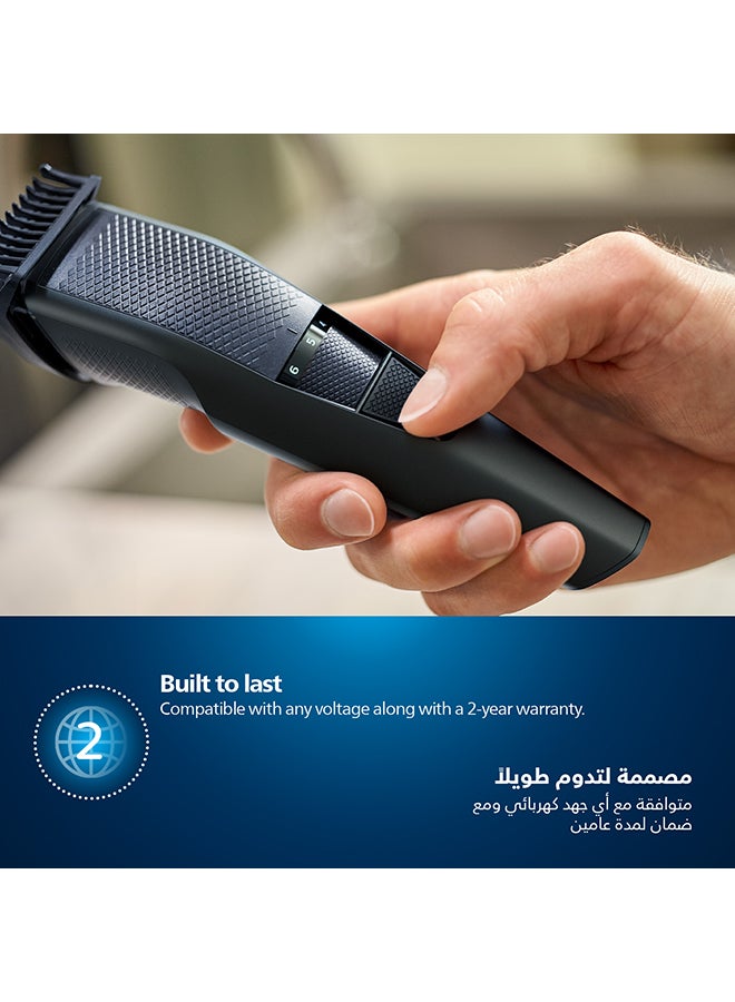 This trimmer with the innovative Lift & Trim system lifts and captures more low-lying hairs for efficient, even trimming results. This way you will easily achieve the 3-day stubble, short beard or long beard look you want.