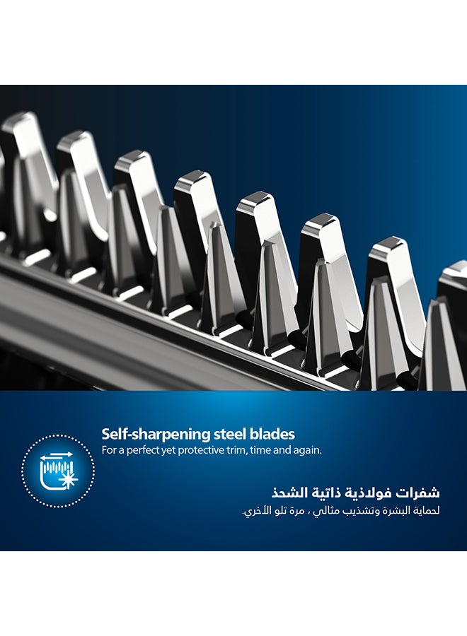 The self-sharpening steel blades on the Philips 3000 beard trimmer stay as sharp and effective as on day 1 to deliver a perfect yet protective trim, time after time.