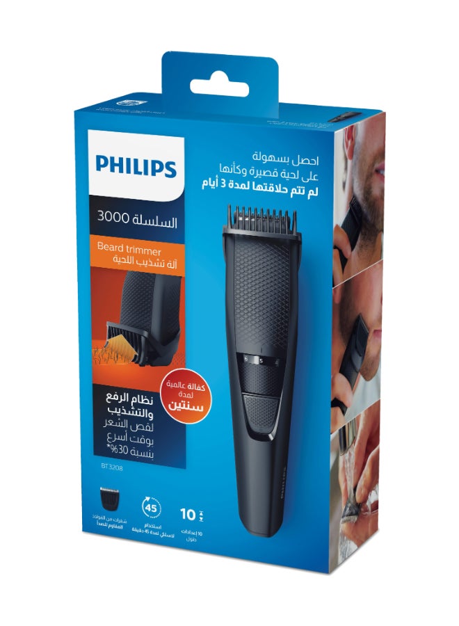 Beard Trimmer BT3208/13,Precise Beard Styling for Effortless Grooming,10 Length Settings, Maintenance-Free Blades, No Oil Required,45min Cordless Use, Ergonomic Grip Black