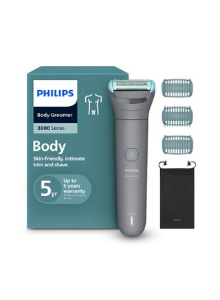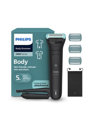 Bodygroom BG5021/15,Showerproof Groin & Body Trimmer,Body Shaver, 3-Length Combs,60min Cordless, Skin Protection, Back Reach Attachment Black/Grey