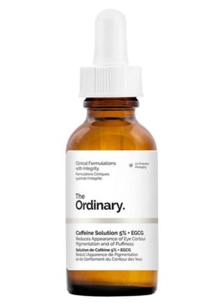 Counteract dark circles and puffiness with the 5% Caffeine Solution + EGCG from The Ordinary. Delivering a highly concentrated dosage of Caffeine and Epigallocatechin Gallatyl Glucoside (EGCG) derived from Green Tea Leaves, the lightweight serum rapidly absorbs into the delicate eye contour to help reduce the appearance of discolouration and alleviate symptoms of fatigue and stress. Skin feels refreshed and lifted with enhanced hydration and a more even tone.