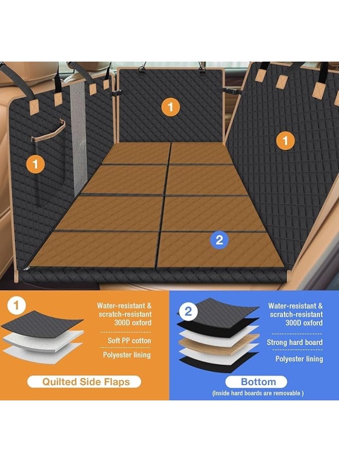 【Comfortable & Safe】Back seat dog hammock with side wings, storage bags, and seat belts. Our dog back seat cover prioritizes the comfort of the pet, with side wings to protect the car door from scratches, and a seat belt that can be inserted into the seat belt opening. In addition, the extra storage bag is perfect for storing pet snacks and toys! Dog car seat covers can protect your entire rear seat from dirt, hair, and scratches, making your travel more comfortable.