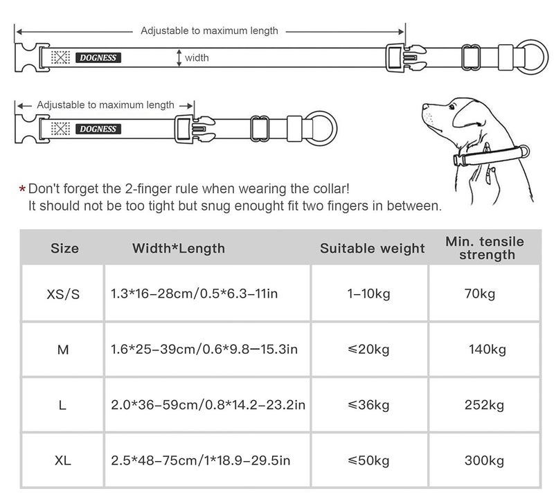 ile ensuring a secure fit. It is adjustable, allowing you to find the perfect fit for dogs of all sizes, from small pups to large breeds. Additionally, the Dogness Reflective Collar includes a strong D-ring for leash attachment, making it compatible with all standard leashes and ensuring a safe and secure connection