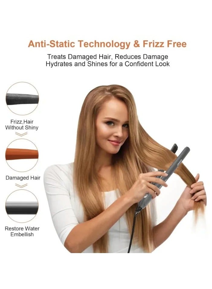 The professional hair straightener is designed with ceramic heating plates to distribute heat evenly, which relaxes the hair and gives you a smooth and shiny finish. It ensures that the moisture of the hair strands is retained without causing any damage.
