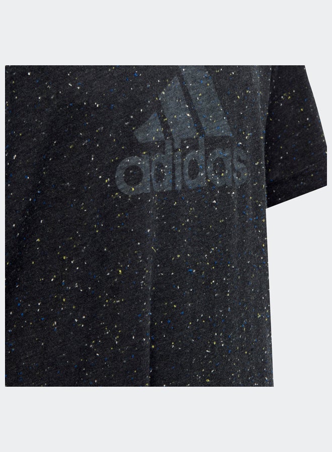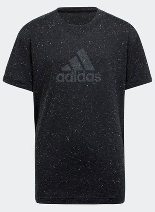 Winning starts with the right attitude. When you look good, you feel good. This juniors' adidas t-shirt channels that winner's spirit with a speckled melange fabric design and a loose fit to keep you comfortable through the day. The adidas Badge of Sport is printed on the chest with a fade effect to round out the look.A minimum of 70% of this product is a blend of recycled and renewable materials.