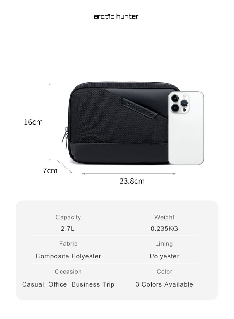 Introducing Item No. K00691 from the CITYHUNTER Series, a compact and water-resistant pouch designed for urban adventurers. Available in Black, Grey, and Blue, this pouch is crafted from durable 100% polyester with a stylish polyurethane synthetic leather trim. The interior features a grey grid polyester lining, adding a touch of sophistication. It includes a multifunctional inside pocket and an anti-theft pocket behind the bag for added security. Stay organized and secure with the K00691 pouch from the CITYHUNTER Series, ideal for carrying your essentials in style.