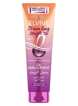 Frizzy Hair? Tame your frizz and stretch it out with our LEAVE IN to make your hair look longer and sleeker for up to 72H of straight hair with no frizz. L'Oréal Paris Elvive Dream Long Straight Oil Replacement is enriched with Black Cumin Oil and Micro Keratin, a smoothing technology to soften the hair fibbers. As a result, the hair will become naturally straight, supple, and shiny, extending hair length with no frizz. Directions:. Apply on wet or damp hair. Blow dry your hair or proceed with your usual brushing.