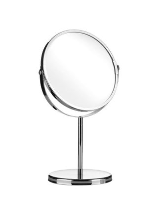 Mirror surface is 8 inches. Double-sided mirror with normal magnifying. Excellent quality with brass material 360 degree swivel and arm can be extended according to your need Ideal for applying makeup wearing contacts and shaving etc.