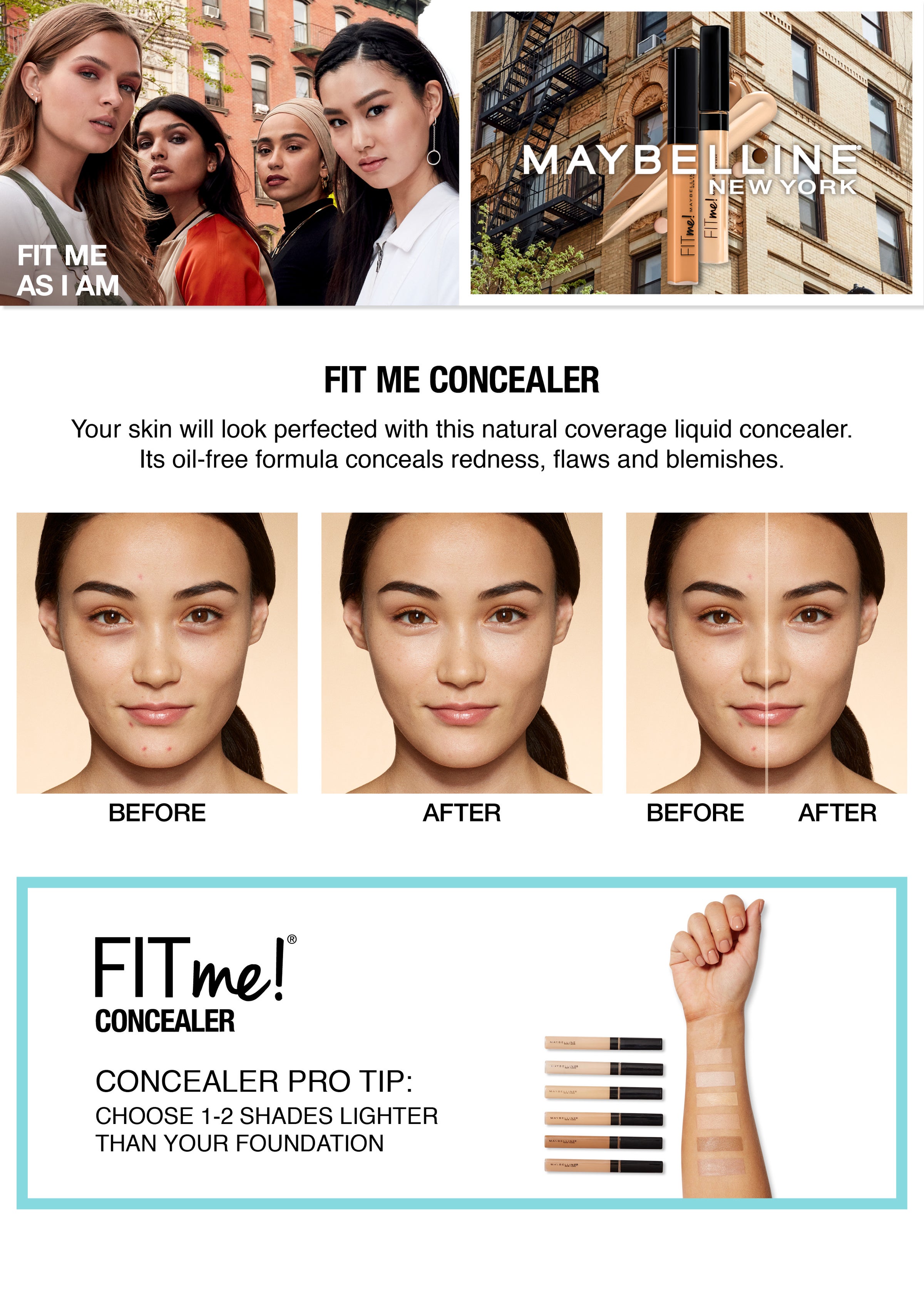 Fit Me® Concealer makeup for flawless, natural coverage. These oil-free concealers match skin tones to deliver a more even complexion.