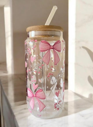 Mug of iced coffee and fresh juices, engraved with distinctive bows, makes a great gift or a unique collectible.
