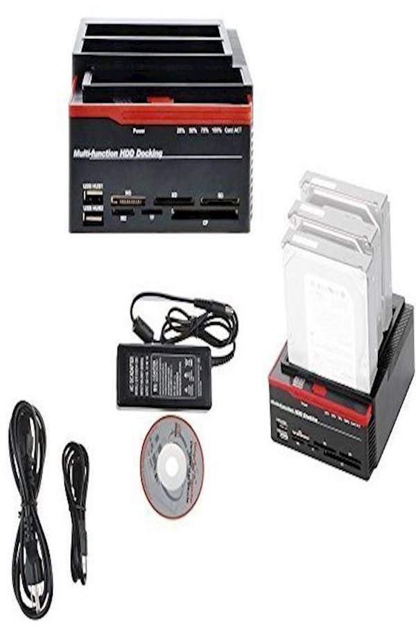 This item is NOT compatible with all WD hard drivesCompliant with serial ata & pata international organization: serial ata version 2.63 slots triple docking (2 x SATA slot and 1 x IDE slot)Supports SATAI/II (1.5G/3.0G) high speedSupports 2x 2.5 & 3.5inch SATA & 1x IDE hard drives simultaneously without any adaptersOffline Hardware Cloning function; Software backup functionSupports One Touch Backup (OTB) functionSupports one-button disk copy (clone function) Supports USB 2.0 hi-speed (480Mbps) and full-speed (12Mbps) operationHot swappable for most operation systems (Win 98/ME/2000/XP/Vista/Win 7, Mac OS 9.X/10.X, Linux)Plug and Play; 12V 5A external power supply2 ports USB 2.0 HubMS/M2/XD/CF/SD/TF card readerSpecification: HDD supported: 2.5 /3.5 SATA, STAT II, IDE HDDHDD capacity: Up to 2TBInterface: 1 x XD, 1 x MS, 1 x SD, 1 x CF, 1 x M2, 1 x TF, 1 x USB 2.0, 2 x USB HubPower supply input: 100~240V, 50~60hzPower supply output: 12V, 5APlug standard: Type B (as shown in the pictures) OS supported: Win 98/ME/2000/XP/Vista/Win 7, Mac OS 9.X/10.X, Linux; Color: Black and RedProduct dimensions: 137x134x66mmProduct weight: 302g Weight: 750g (with package) Dimensions: 16.2 x 15.3 x 12.3 cm (with package)Package: 1 x SATA IDE HDD Docking1 x Power Supply1 x USB Cable