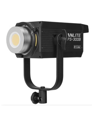 Nanlite FS-300B Overview The FS-300B Bi-Color LED Monolight from Nanlite is an AC powered, bi-color LED fixture engineered to provide maximum output while maintaining an even light spread. A true, all-in-one monolight, the FS-300B employs a large LED array and a precision-engineered reflector to emit up to 38,720 lux of 5600K daylight-balanced light at 3.3', and its bi-color design allows it to provide a CCT range of 2700-6500K, all while maintaining a high CRI/TLCI of 96/97, ensuring accurate color rendition. Built-in Bluetooth wireless capacity allows the FS-300B to be controlled with the free NANLINK mobile app for iOS and Android. In addition, built-in 2.4 GHz provides remote wireless control by using the separately available WS-RC-C2 remote control, or the WS-TB-1 transmitter box for more elaborate setups. Powerful, Even Light Output Larger LED array than most COB LED monolights to deliver up to 38,720 lux at 3.3' (with the included reflector), as well as a smooth and even light spread with no hotspots when used with a softbox. Bi-Color Light with Advanced Features Adjustable Kelvin range of 2700-6500K, providing the full flexibility of bi-color output. It also has advanced features including maximum output mode to supply full output power, and constant output mode to maintain constant intensity across CCT range. Integrated Monolight with Fan Cooling A true monolight, the FS-300B combines the control unit, power adapter, and lamp body into one compact unit. The integrated design makes it more lightweight and enables effective fan-powered heat dissipation, ensuring optimal performance and long life. Bowens-S Reflector Mount By utilizing the near-universal Bowens style light modifier mount and incorporating an umbrella holder into the yoke, the FS-300B is compatible with an extensive selection of light modifiers. This selection includes, but is not limited to, Nanlite's line of Fresnels, softboxes, and umbrellas. 12 Practical Lighting Effects With pre-programmed customizable special effects, the FS-300B makes it easy to imitate lighting scenarios that can otherwise be tricky to recreate. Simulate 12 different practical lighting effects including CCT loop, INT loop, flash, pulse, storm, TV, paparazzi, candle/fire, bad bulb, firework, explosion, and welding. Local and Wireless Remote Control The FS-300B has intuitive analog controls and a large LCD display for precision control, but it can also be controlled remotely via Bluetooth with the free NANLINK app for IOS or Android. It can also be remotely controlled on a 2.4 GHz connection using the separately available WS-TB-1 transmitter or WS-RC-C2 remote control. In the Box Nanlite FS-300B Bi-Color LED Monolight Reflector Power Cord (14.8') COB Protective Cap