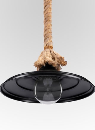 "Dimensions of the pendant:30 * 30 * 60 cm Pendant rope lenght: 60 cm Material: metal & jute Outside: black painted Inside: black painted Product doesn't include lamp"