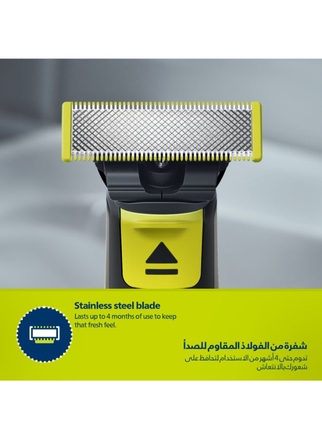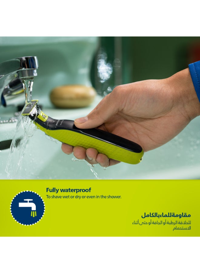 OneBlade QP2724/10,Trim, Edge & Shave Any Length of Hair,3 Stubble Combs, Dual-Sided Blade,Wet & Dry Use, 45min Cordless Use Black & Lime