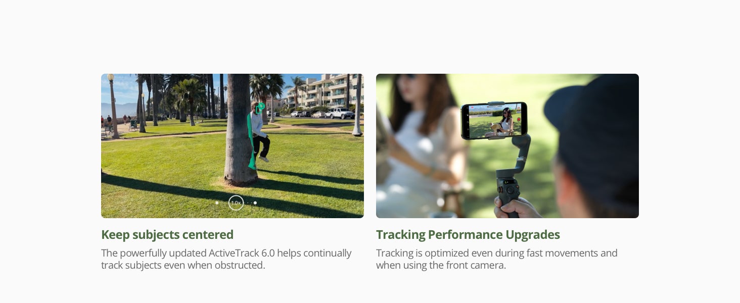 ActiveTrack 5.0 - Upgraded ActiveTrack 5.0 follows your subject smoothly and keeps them center frame. Capture them as they turn to the side or even spin around. Ideal for when you want to tell a story
