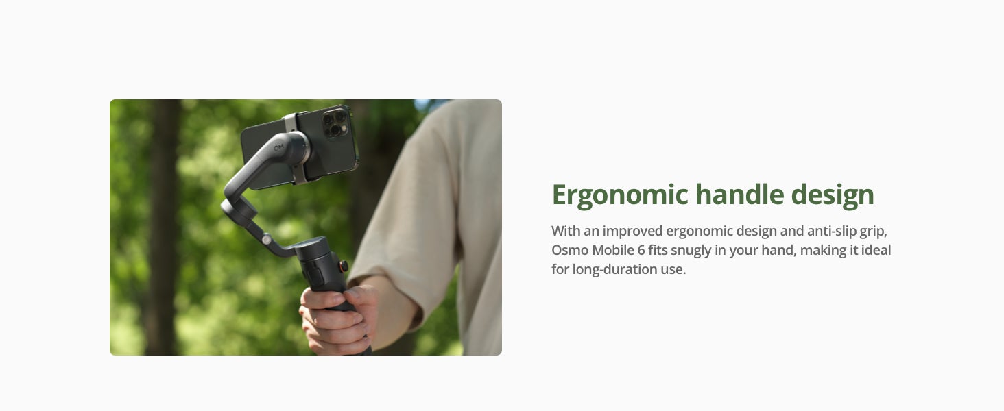 Osmo Mobile 6 is an intelligent smartphone stabilizer packed with creative features. It's not only compact and easily foldable to fit in your palm, but also launches automatically once unfolded to capture shots at a moment's notice. Get dynamic angles and perfect selfies by using the built-in extension rod. A whole host of intelligent functions and guides are at your disposal. The DJI Mimo app facilitates efficient shooting, editing, and sharing, allowing you to catch every unforgettable moment.