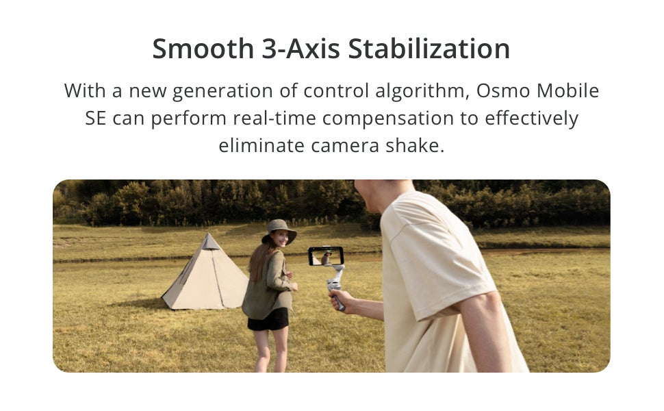 Smooth Footage - Elevate your shots with 3-axis stabilization. With a next-gen control algorithm, Osmo Mobile SE compensates in real-time for buttery smooth footage