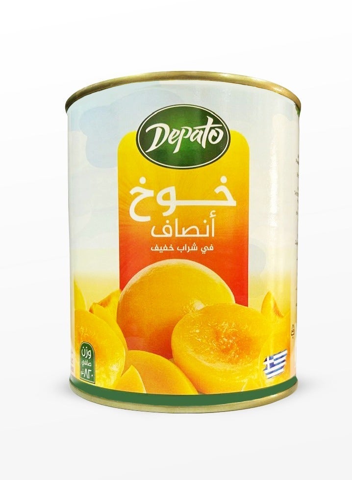 | What's In The Box | 1 × Can of Depato Peach Halves in Syrup – 820g |