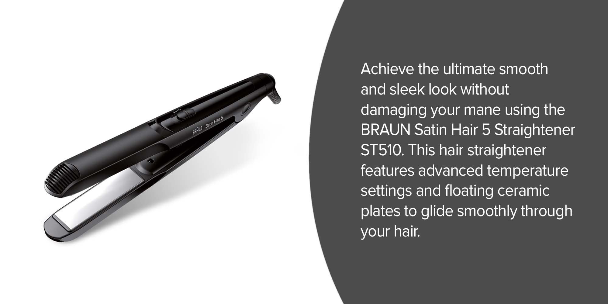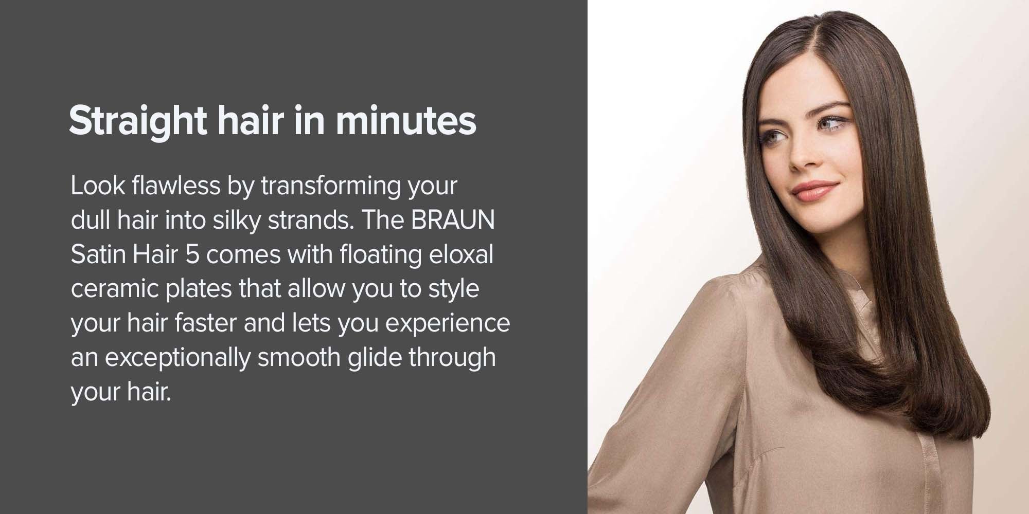 Braun introduces a high-performance hair straightener designed to deliver smooth, precise, and damage-free styling. Featuring 100% ceramic Eloxal plates, it ensures exceptionally smooth gliding for effortless straightening and long-lasting shine. The unique floating plate technology adapts to your hair with less tension, reducing friction and minimizing stress to help prevent breakage. Slim precision plates allow for detailed styling, making it ideal for creating sleek looks or sophisticated styles with maximum control. With multiple temperature settings ranging from 130°C to 200°C, and the option for manual temperature regulation, it offers styling flexibility tailored to your hair type. Its multi-voltage design makes it a perfect travel companion, ensuring safe and reliable performance anywhere in the world. Braun combines advanced technology with user-friendly features to help you achieve salon-quality results at home or on the go.