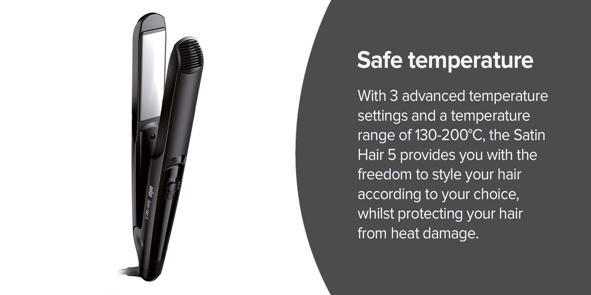 Advanced temperature control: Features 3 safe and effective temperature settings (130°C–200°C) suitable for all hair types