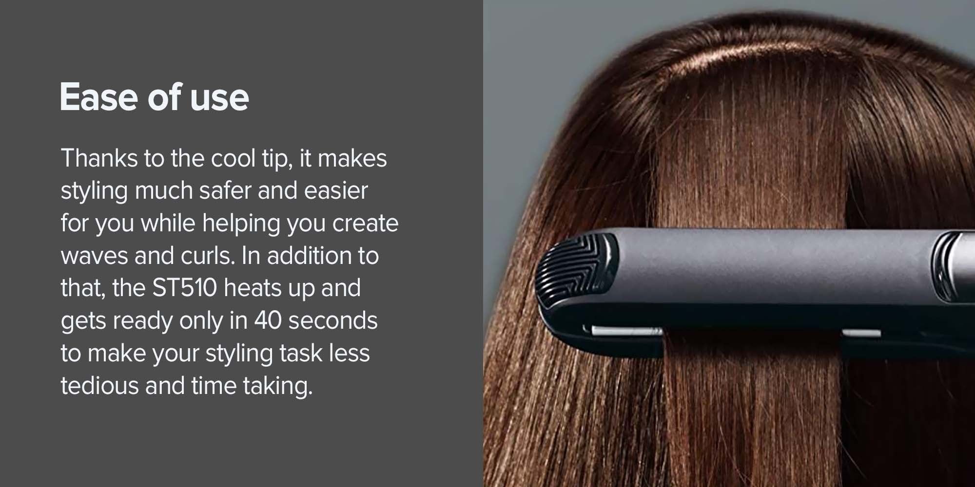 Cool tip: Safely handle the straightener while curling or creating waves with the convenient cool-touch tip