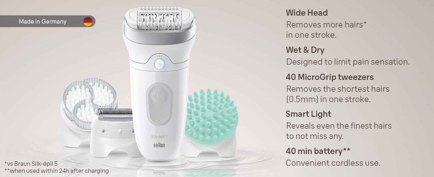 Wide Head: The wide head removes more hair in one stroke. The epilator catches short hairs (0.5mm) that wax can't.