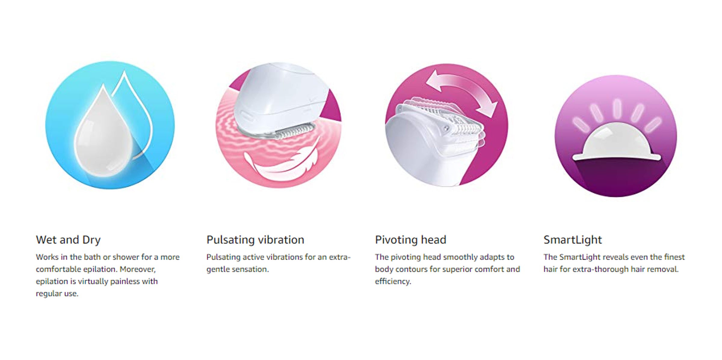 1. Epilation gives you instantly smooth skin that lasts up to 4 weeks.
