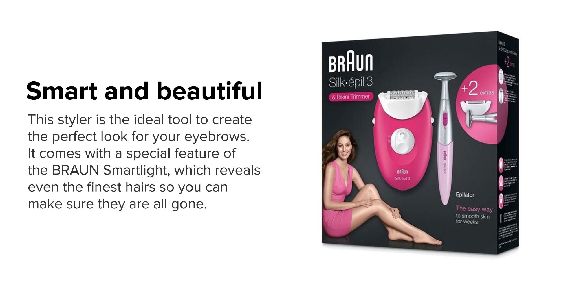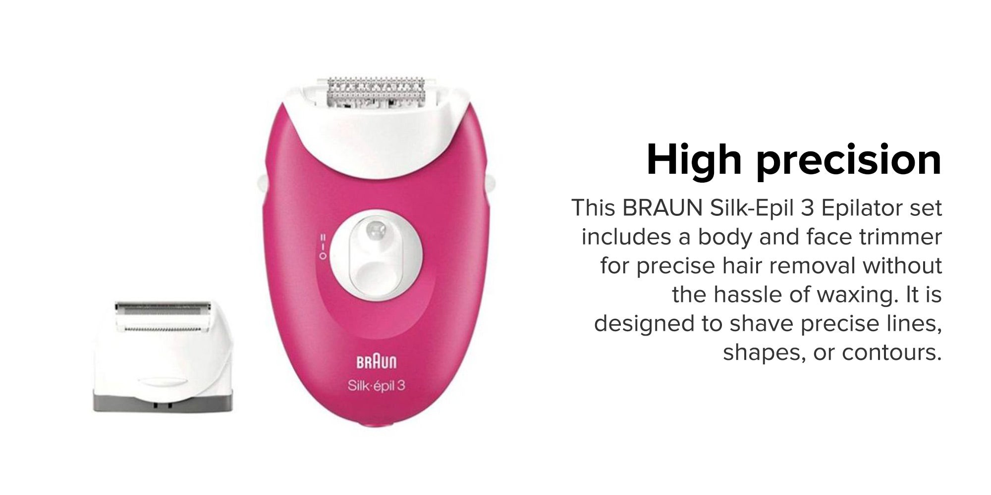 The Braun Silk-épil 3-420 is ideal for beginners for long-lasting hair removal. Enjoy weeks of salon-smooth skin thanks to the 20-tweezer system that gently removes hairs by the root. The massage rollers help to stimulate the epilating area and make the experience less painful. The cord allows you to epilate with no charging breaks, all in one go. Design the most perfect lines with the bikini styler - precision trimming at your fingertips.