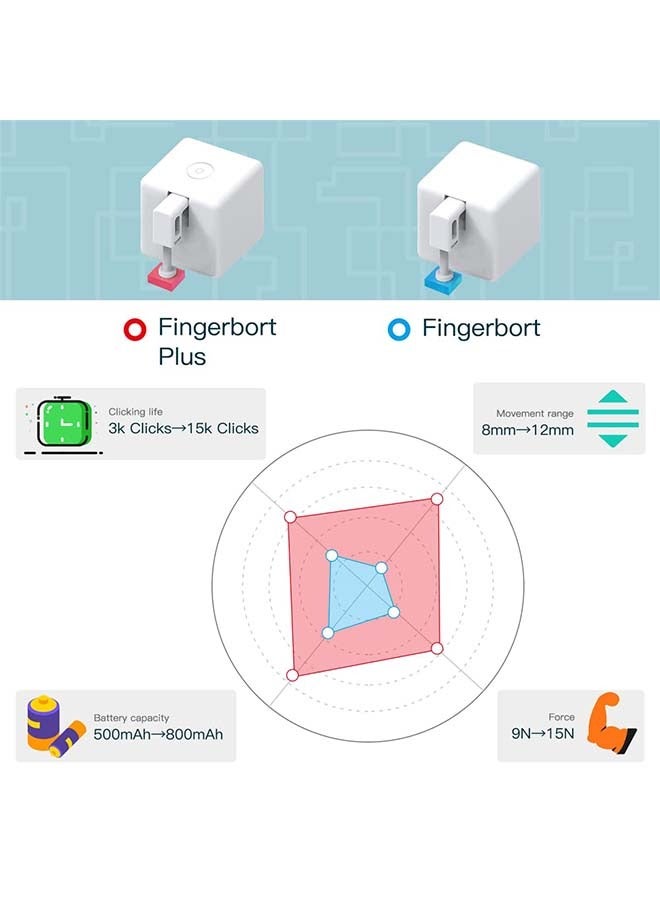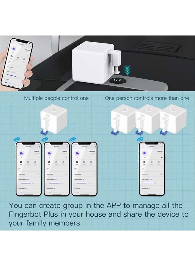 【تصميم معياري】يسمح تصميمه المعياري للمستخدمين باستبدال ذراع Fingerbot بخيارات حزمة أدوات متنوعة من Fingerbot لتوسيع قدرته في حالات مختلفة. كل ما تحتاجه هو لصق Fingerbot بجوار المفتاح أو الزر مباشرة مع شريط من الملصق. لا يوجد تبديل، لا توجد حاجة لأي أدوات.