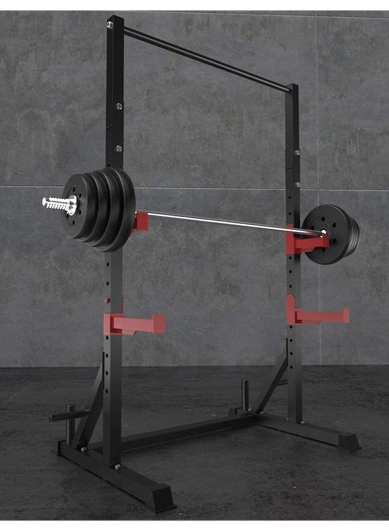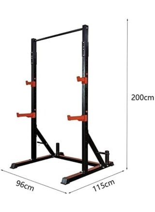 1441 Fitness Multi-Functional Squat Rack & Adjustable Power Rack with Two J-Cups Barbell Rack Dip Stand Weight Lifting Accessories for Home & Gym, Weight Capacity - 500 LBS - Black The capacity of this squat rack is 500 pounds. More than just a place to set up your bar, our Squat Rack accomplishes a lot more. It comes with two sets of safety arms as well as two J-cups that may be adjusted to the ideal height. It also has two 12-inch poles for bumper plates and storage. It also has a pull-up bar for doing pull-ups. This squat rack has a pull-up bar, safety arms, and plate storage posts. SPACE SAVING The first and most obvious benefit is that they save space, Squat racks that fold up are a great way to save room in your garage or gym without losing quality. MULTI FUNCTIONAL A foldable squat rack or power rack is more adaptable than most standard squat racks, adding that good quality folding squat racks allow you to do way more than you do. LESS INJURY Adding squats to your workouts can help boost your exercise performance, decrease your risk of injury, and keep you moving more easily throughout the day. But these are just a few of the benefits. SPECIFICATIONS Brand Name: 144 Fitness Weight Capacity: 500 Pound Dimension: 204 x 32 x 15 CM Product Weight: 50 Kilograms
