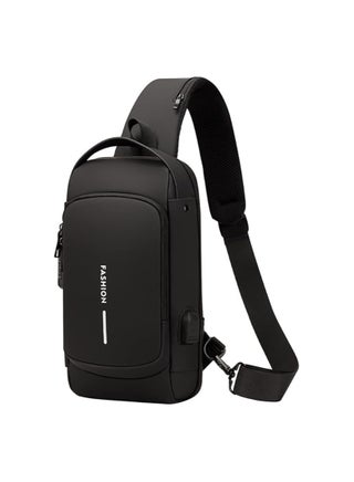 الشنطة مصنوعة من خامات عالية الجودة مقاومة للماء، وبتحافظ على متعلقاتك الشخصية في أمان تام بفضل تصميمها المضاد للسرقة المزود بسوست مخفية. كمان فيها منفذ شحن USB خارجي يساعدك تشحن موبايلك بسهولة أثناء الحركة بدون ما تحتاج تفتح الشنطة.