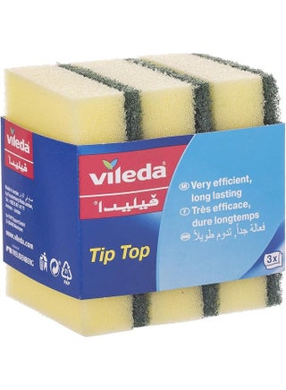 Vileda Tiptop Dishwashing Sponge, 3 Pieces Mid Foam Scourer for tough dirt, vileda sponge for dishes, long lasting and durable.