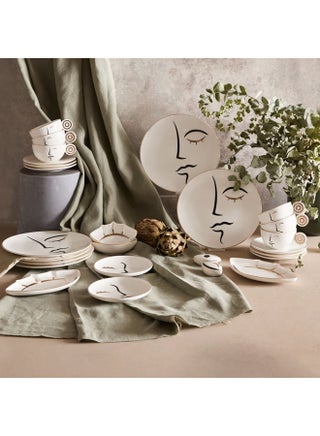 | Set Includes | Set Content 6 Pieces Serving Plate (25.3 cm) 6 Pieces Tea Cups (13.3 cm) 6 Pieces Teacup Saucer (16 cm) 2 Jam Bowls (13 cm) 2 Olive Groves (22.5 cm) 2 Pieces Cheese Plate (15.7 cm) 1 Piece Salt Shaker (8.4 cm) 1 Piece Pepper Shaker (8.4 cm) |