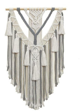 Boho Macrame Wall Hanging Geometric Woven Tapestry Beige and Grey Cotton Handmade Boho Wall Decoration Tapestry Chic Bohemian Tapestry (43 x 70 cm, Grey)