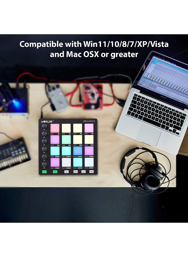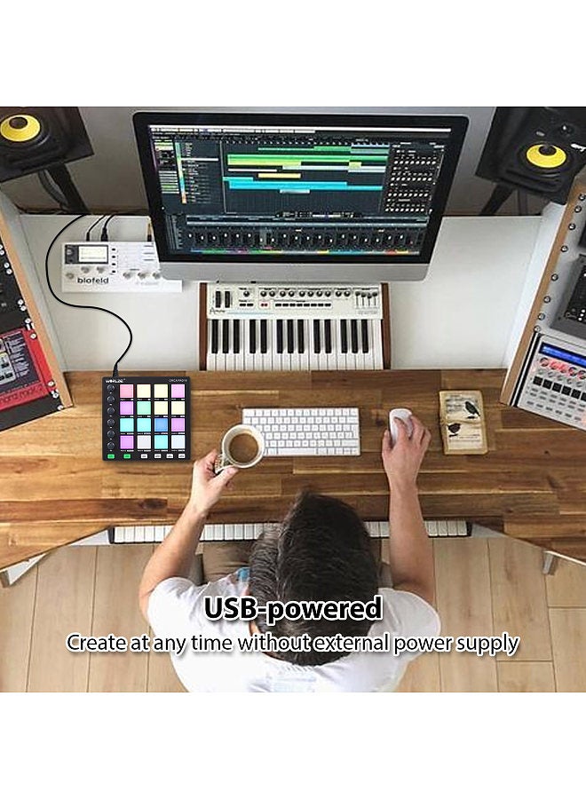 【Portable and Compact】: This mini MIDI controller pad is designed for portability and convenience. It's compact and lightweight, making it easy to carry around and perfect for musicians, producers, and DJs on the go.