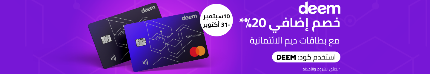 يتم تطبيق الخصم عند إتمام عملية الدفع باستخدام بطاقة ديم الائتمانية الصادرة في الإمارات مع إدخال كود الخصم Deem.