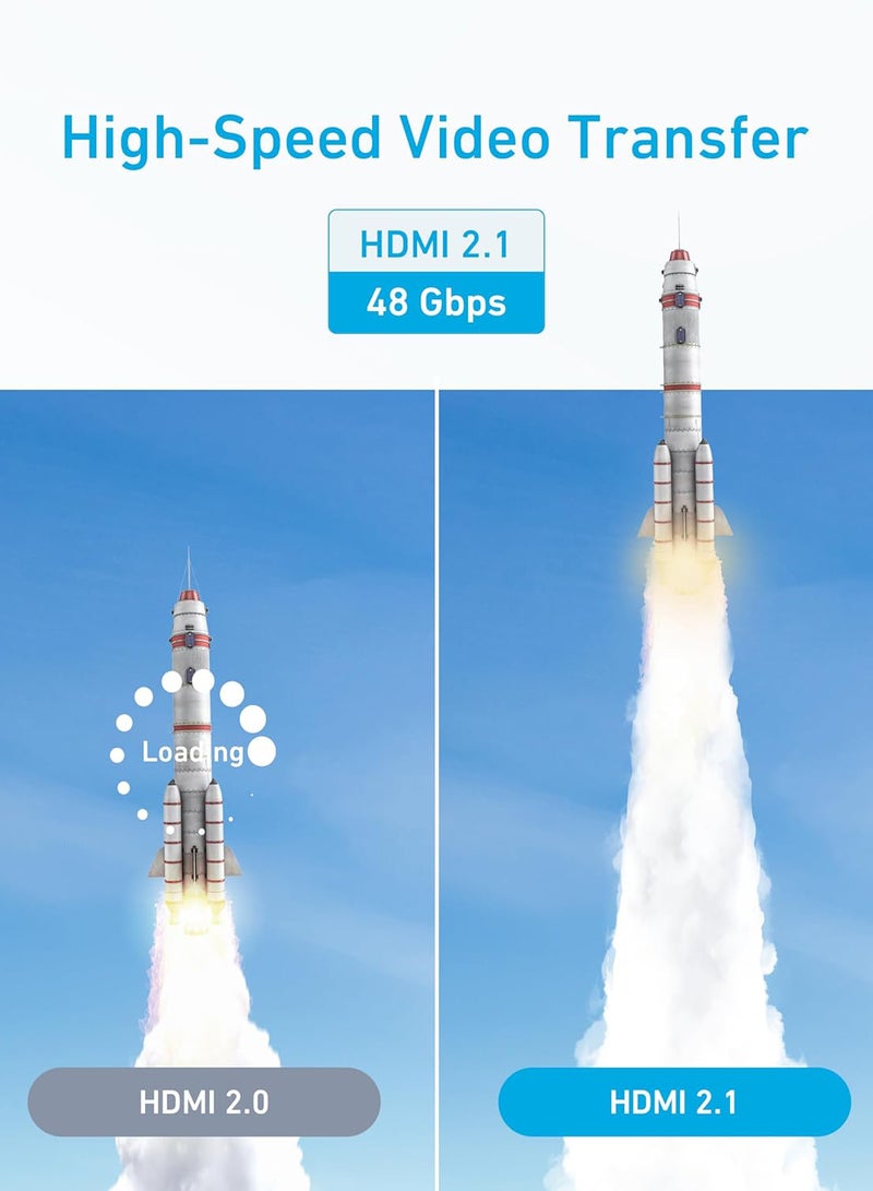 نقل فيديو سلس: مع أحدث تقنية HDMI 2.1، قم ببث أو نقل الفيديوهات دون انقطاع، وشاهد قوة تصل إلى 48 Gbps في عرض النطاق الترددي، مما يضمن محتوى واضح باستمرار.