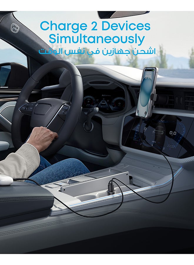 شاحن سيارة Anker USB-C، محول سيارة بمنفذين من النوع C بقدرة 30 وات، شاحن سيارة iPhone مع PowerIQ 3.0، لسلسلة iPhone 15/14/13/12، وسلسلة Samsung Galaxy S23/S22/S21، وiPad Pro، وAirPods، و أكثر