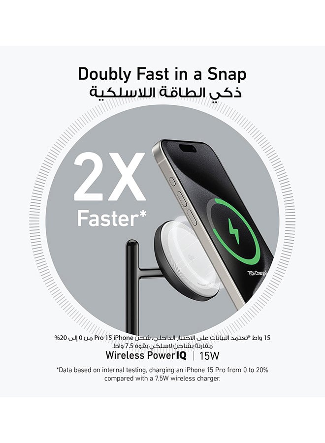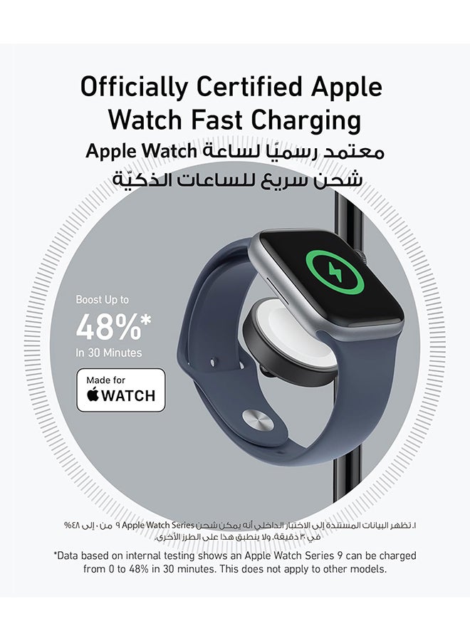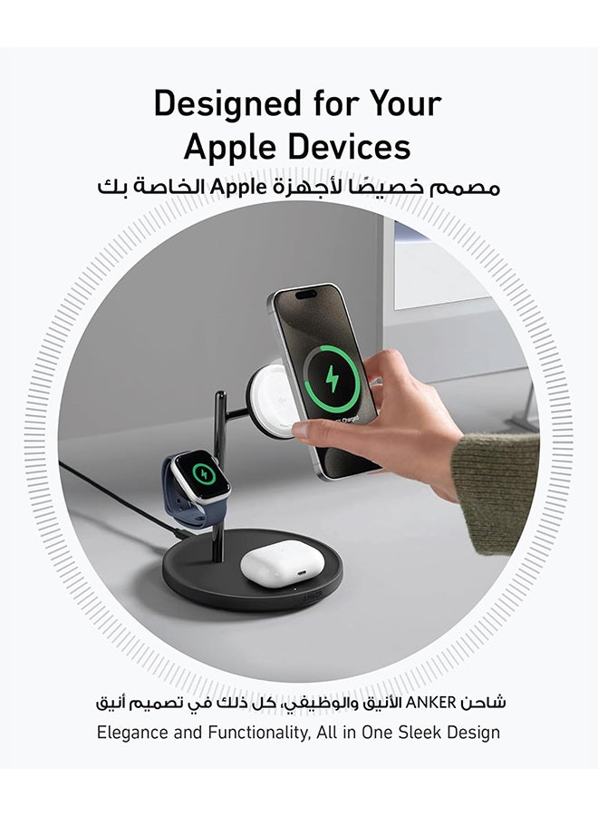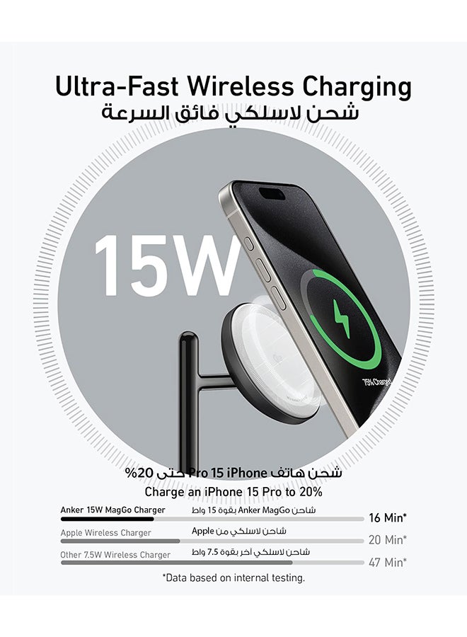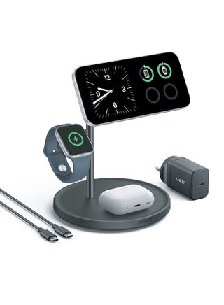 | محتويات العلبة | Anker MagGo Wireless Charging Station (3-in-1 Stand), 40W USB-C charger, 5 ft (1.5 m) USB-C to USB-C cable, welcome guide, 24-month warranty, and our friendly customer service. |